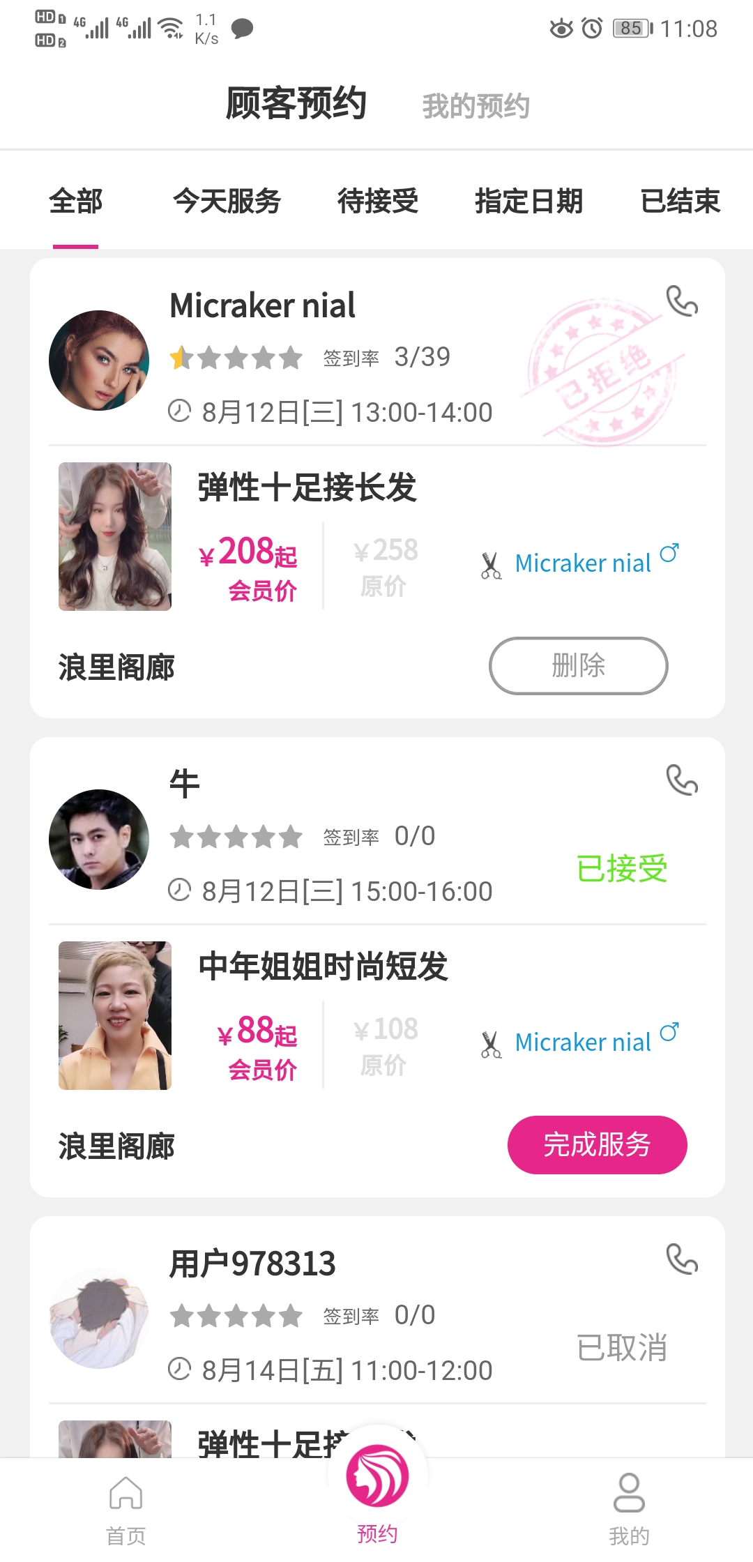 顾客可以在本APP找到心仪的发型、美妆等服务,并发起预约!